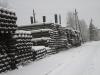 Трубы лежат на складе в Челябинске.